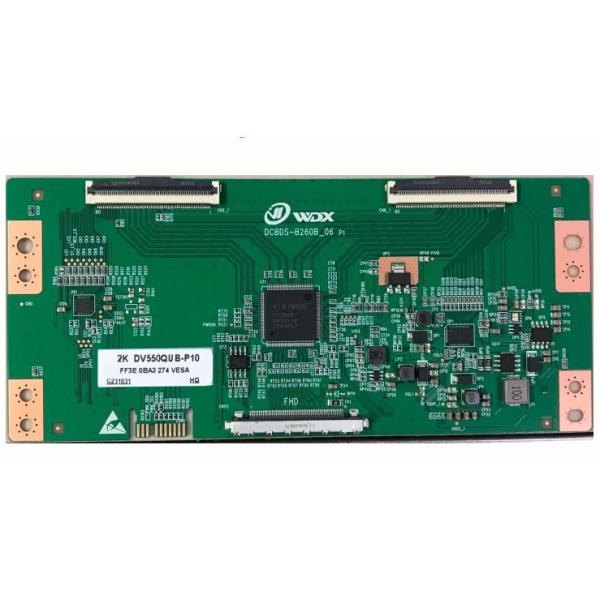 whose pixels are arranged in RGB Vertical Stripe. As for mechanical detail, it features active area of 1209.6(W)×680.4(H) mm, outline size of 1221.4(W)×694.8(H)×1.34(D) mm, with surface treament of Antiglare (Haze 1%), Hard coating (3H), net weight of 2.60Kgs (Typ.), utilizing 0.50+0.50 mm mm plate. As a ADS, Normally Black, Transmissive CELL product, DV550QUB-P10 can provides 1200:1 transimissive contrast ratio, 89/89/89/89 (Typ.)(CR≥10) (L/R/U/D) viewing angle, best view direction on Symmetry , and response time of 8 (Typ.)(G to G) ms. Gray scale or the brightness of the sub-pixel is determined with a 8-bit + Hi-FRC gray scale signal for each dot, thus presenting a palette of 1.07B colors, also with performance of color gamut 73% (NTSC). This product have no backlight. DV550QUB-P10 utilizes V-by-One 8 lane as it's signal inputting systerm, which connected by 51 pins Connector with power supply voltage of 12V (Typ.).