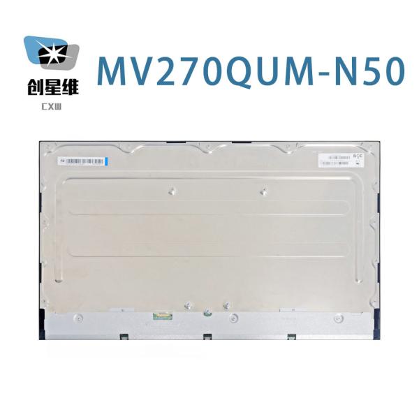 whose pixels are arranged in RGB Vertical Stripe. As for mechanical detail, it features active area of 596.736(W)×335.664(H) mm, outline size of 609.4(W)×355.6(H)×13.8(D) mm, with surface treament of Antiglare (Haze 25%), Hard coating (3H), net weight of 2.45/2.60Kgs (Typ./Max.). As a HADS, Normally Black, Transmissive LCM product, MV270QUM-N50 can provides 400 cd/m² display brightness 1000:1 transimissive contrast ratio, 89/89/89/89 (Typ.)(CR≥10) (L/R/U/D) viewing angle, best view direction on Symmetry , and response time of 14 (Typ.)(G to G) ms. Gray scale or the brightness of the sub-pixel is determined with a 8-bit + Hi-FRC gray scale signal for each dot, thus presenting a palette of 1.07B colors, also with performance of color gamut 95% (DCI-P3). This product adopted 14S4P×2CN WLED as it's backlight systerm which was placed as Edge light type (Bottom side) and have a working life time of 30K hours, external backlight driver is additionally needed. MV270QUM-N50 utilizes eDP (4 Lanes) as it's signal inputting systerm, which connected by 30 pins Connector with power supply voltage of 10.0V (Typ.)
